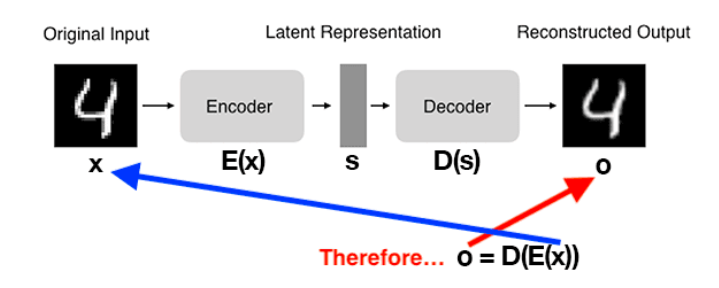 解码器通过接受潜在空间表示s来重建原始输入数据。如果我们将解码器函数表示为D ,将解码器的输出表示为o ,那么我们可以将解码器表示为 o=D(s)。