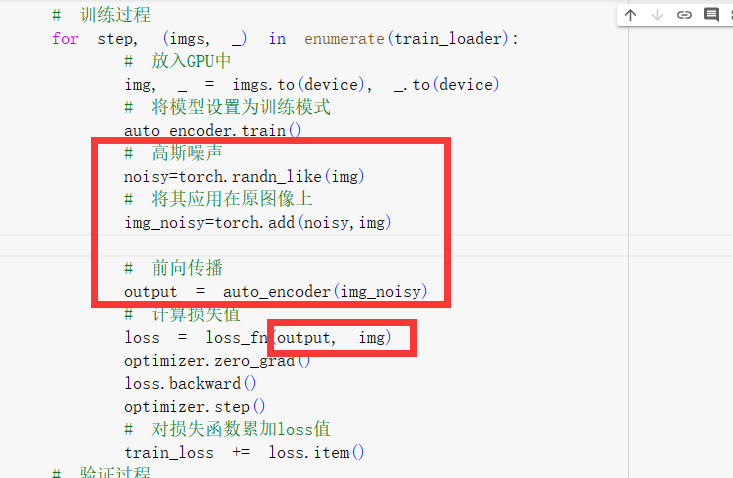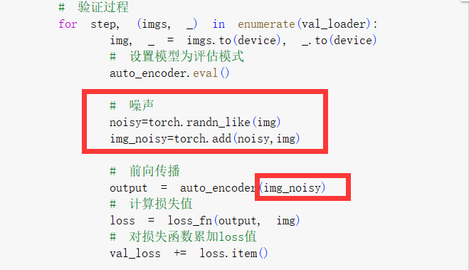 同AutoEncoder的代码,只是在训练和验证阶段需要将原始图片加上高斯噪声后传入模型中