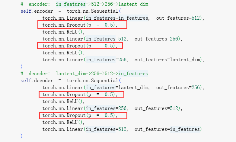 同AutoEncoder的代码,只是在encoder和decoder中加入了dropout操作