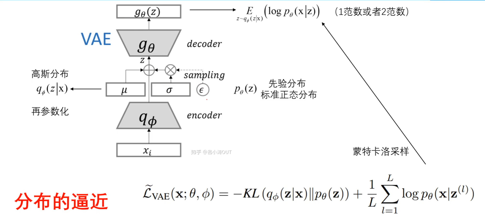 - 为了解决这个问题,重参数化技术被引入,具体来说,对于VAE模型,编码器网络会输出两个参数,一个表示均值μ ,另一个表示标准差σ 。然后从标准正态分布中随机采样一个噪声值 ε 。然后通过 z = μ + σ ∗ ε 将采样操作转为了一个可微的函数,这样也就使得从潜在分布中采样的过程成为可导的操作,允许梯度通过这个操作传播回编码器,进而进行模型参数的优化。