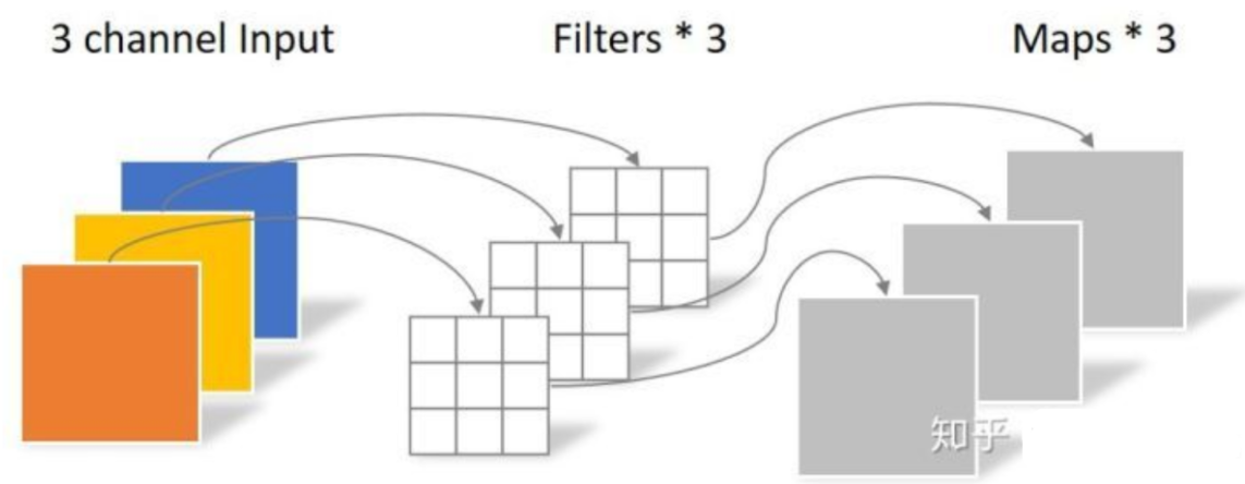 一个卷积核负责一个通道,一个通道只被一个卷积核卷积