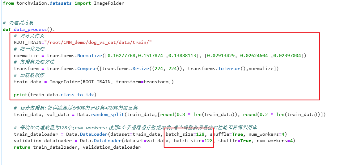 # 每次批处理数量为128个;num_workers:使用4个子进程进行数据加载,适当调整获得最佳的性能和资源利用率