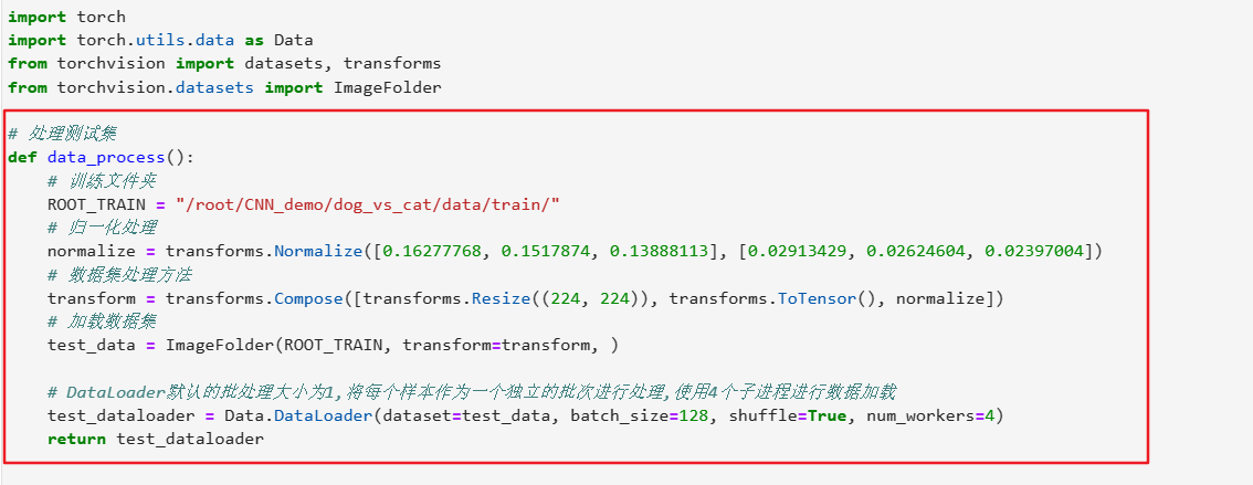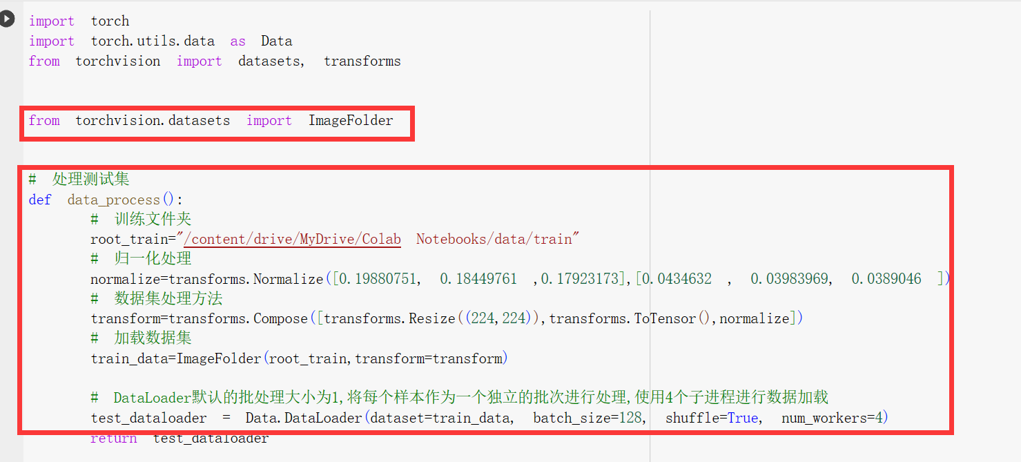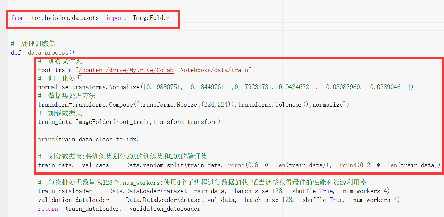 - 加载划分数据集后的train文件夹(这里我放在服务器上)、设置预处理算出来的均值与方差