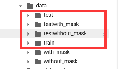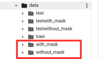 - 创建data文件夹,将解压后的with_mask和withou_mask文件夹放进去: