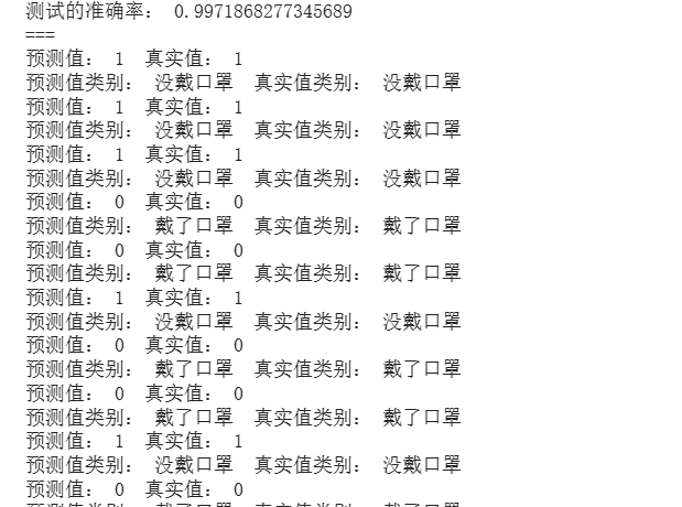 # 打印对应的标签:0为戴了口罩,1为没戴口罩