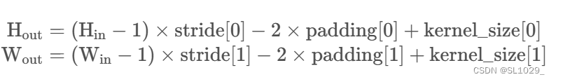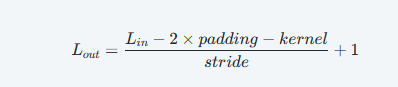 输出大小 = (输入大小 + 2 * padding - dilation * (kernel_size - 1) - 1)/ stride + 1